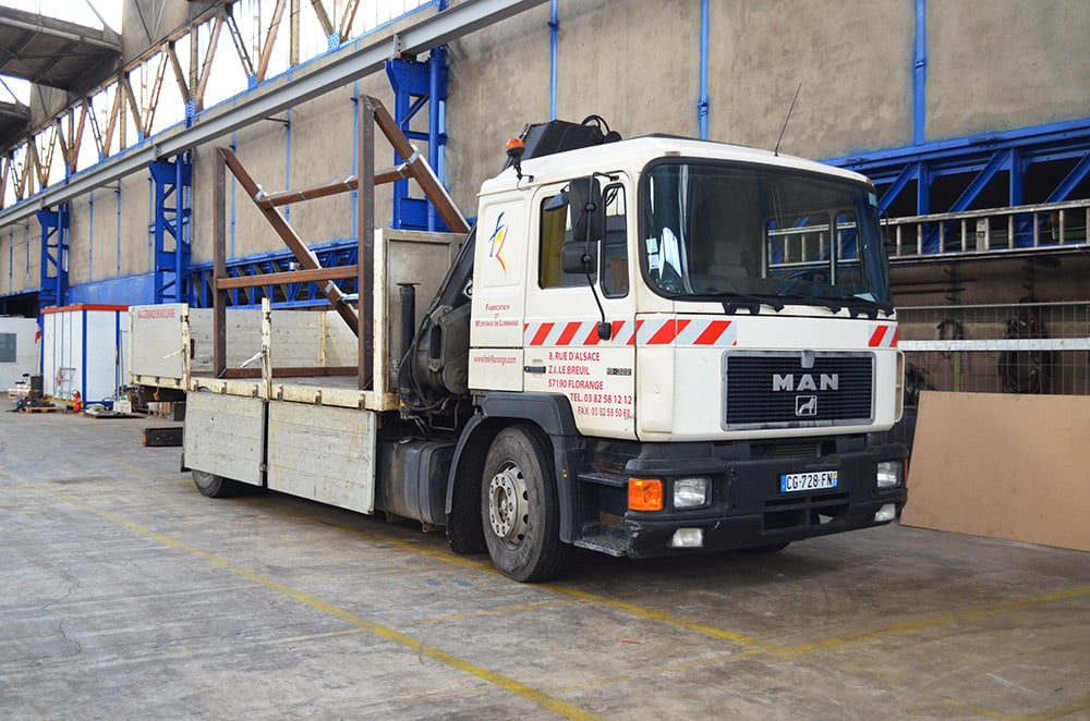 • 1 camion avec potence pour transports jusqu’à 10 tonnes